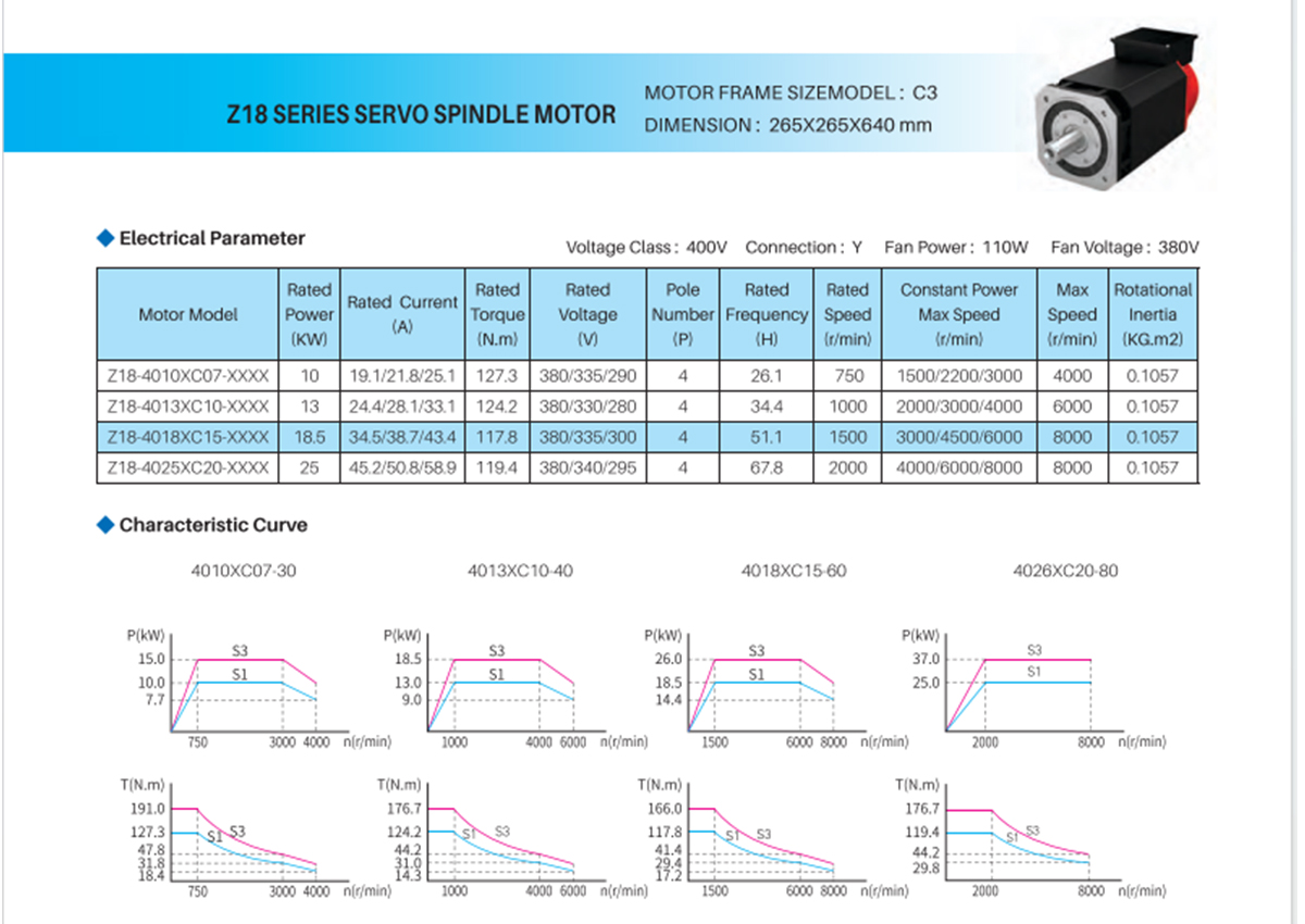 Z18 SERIES SERVO SPINDLE MOTOR—Z18-4010XC15
