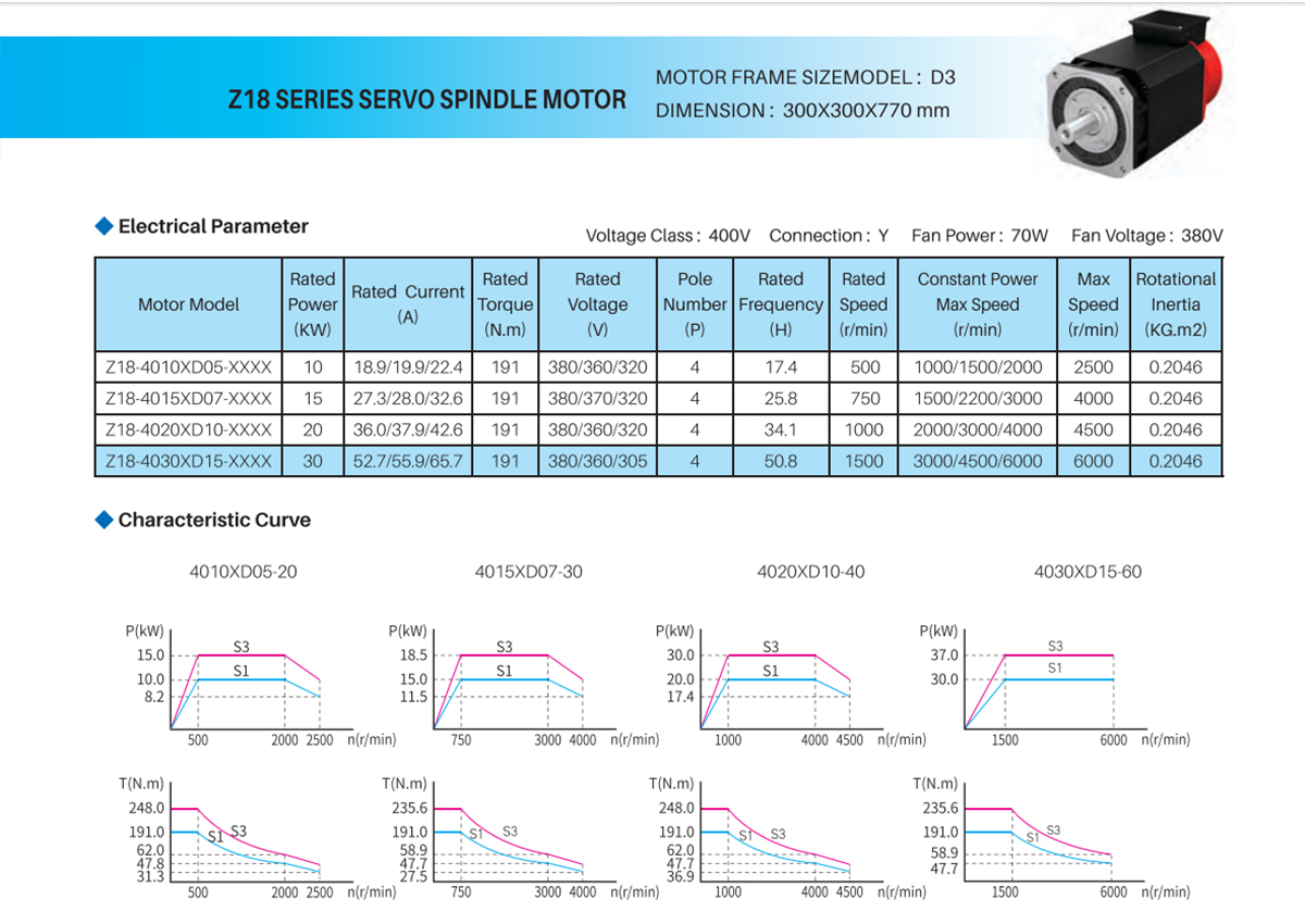 Z18 SERIES SERVO SPINDLE MOTOR—Z18-4010XD10