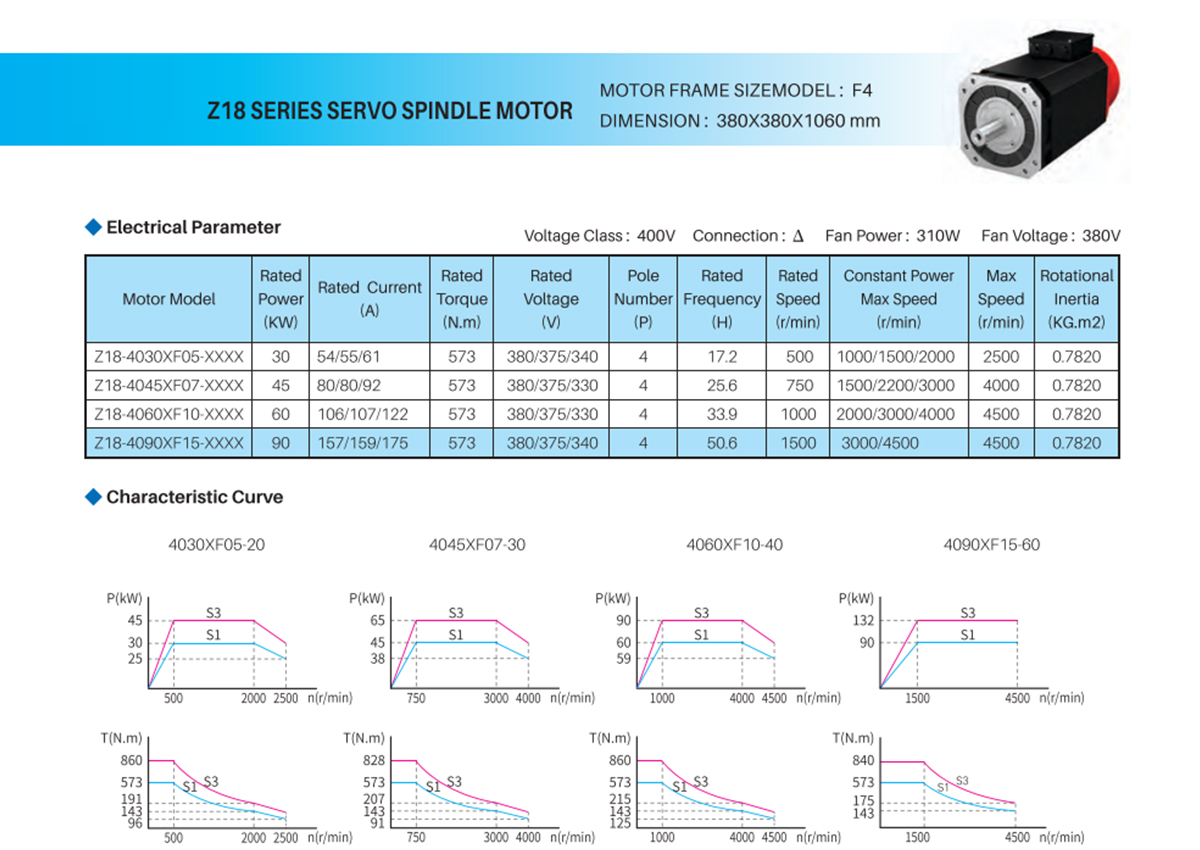 Z18 SERIES SERVO SPINDLE MOTOR—Z18-4030XF15