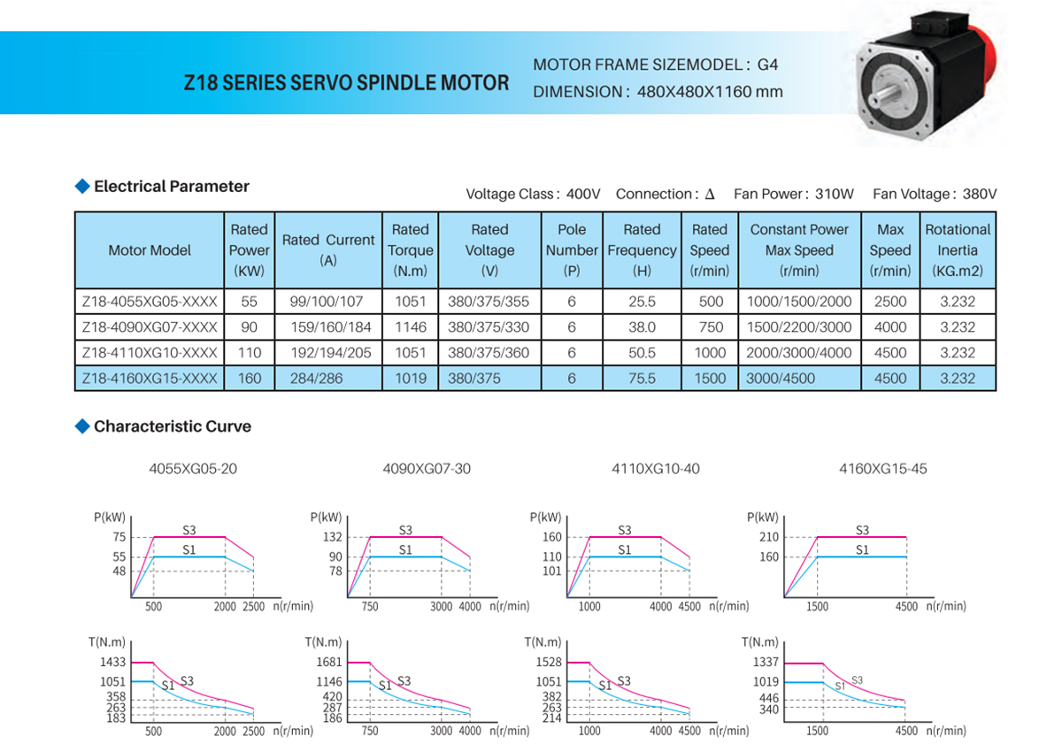 Z18 SERIES SERVO SPINDLE MOTOR—Z18-4055XG15