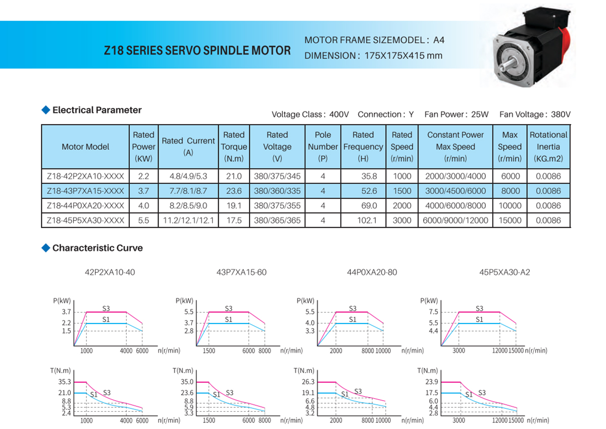Z18 SERIES SERVO SPINDLE MOTOR—Z18-42P2XA30