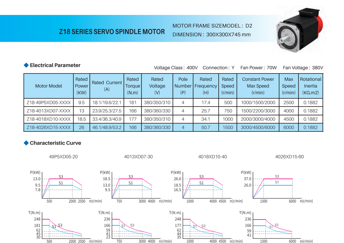 Z18 SERIES SERVO SPINDLE MOTOR—Z18-49P5XD07